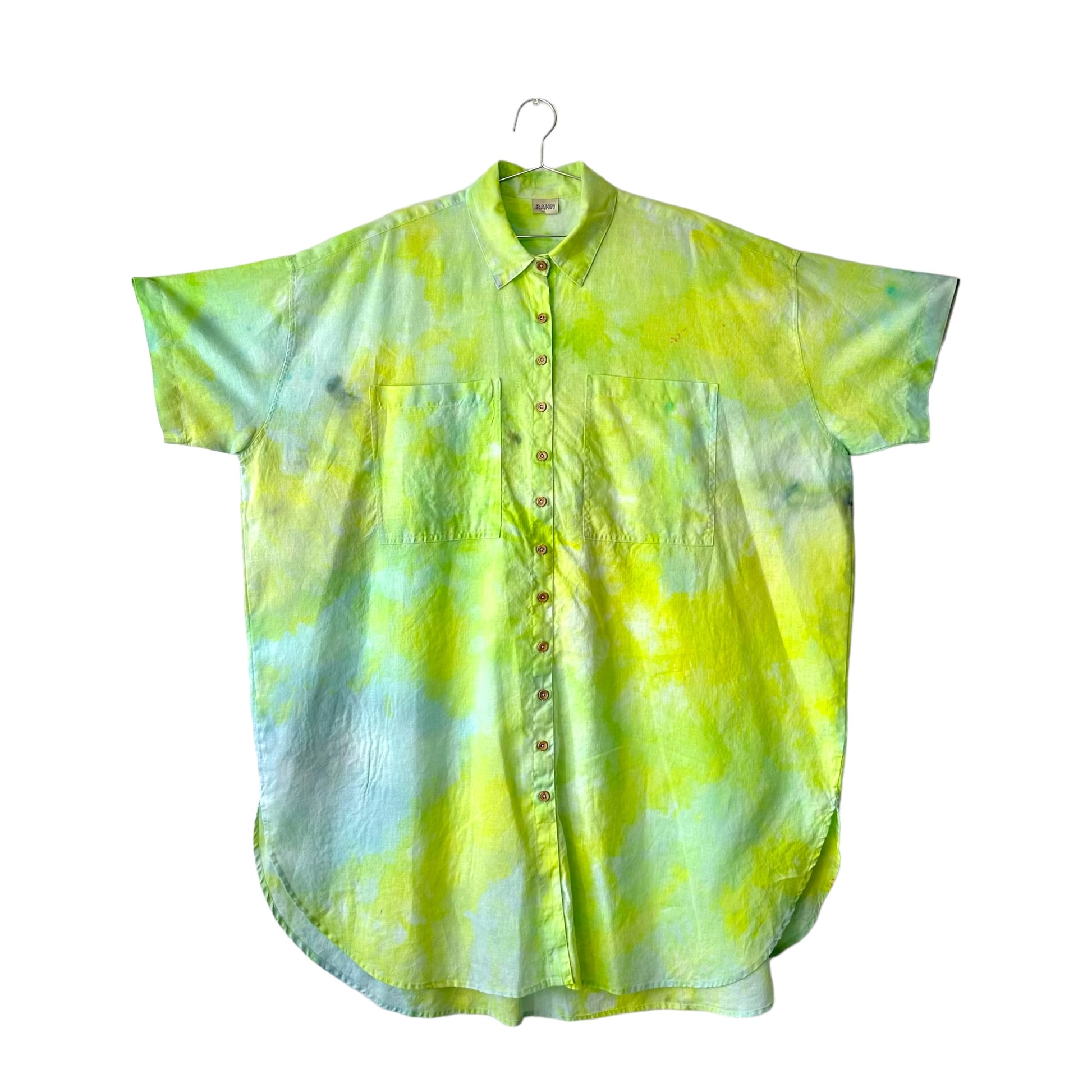 This generous fitting shirt tunic is perfect to be worn open (or closed) over your favorite jeans, as a cover up, as a duster, or over some biker shorts.