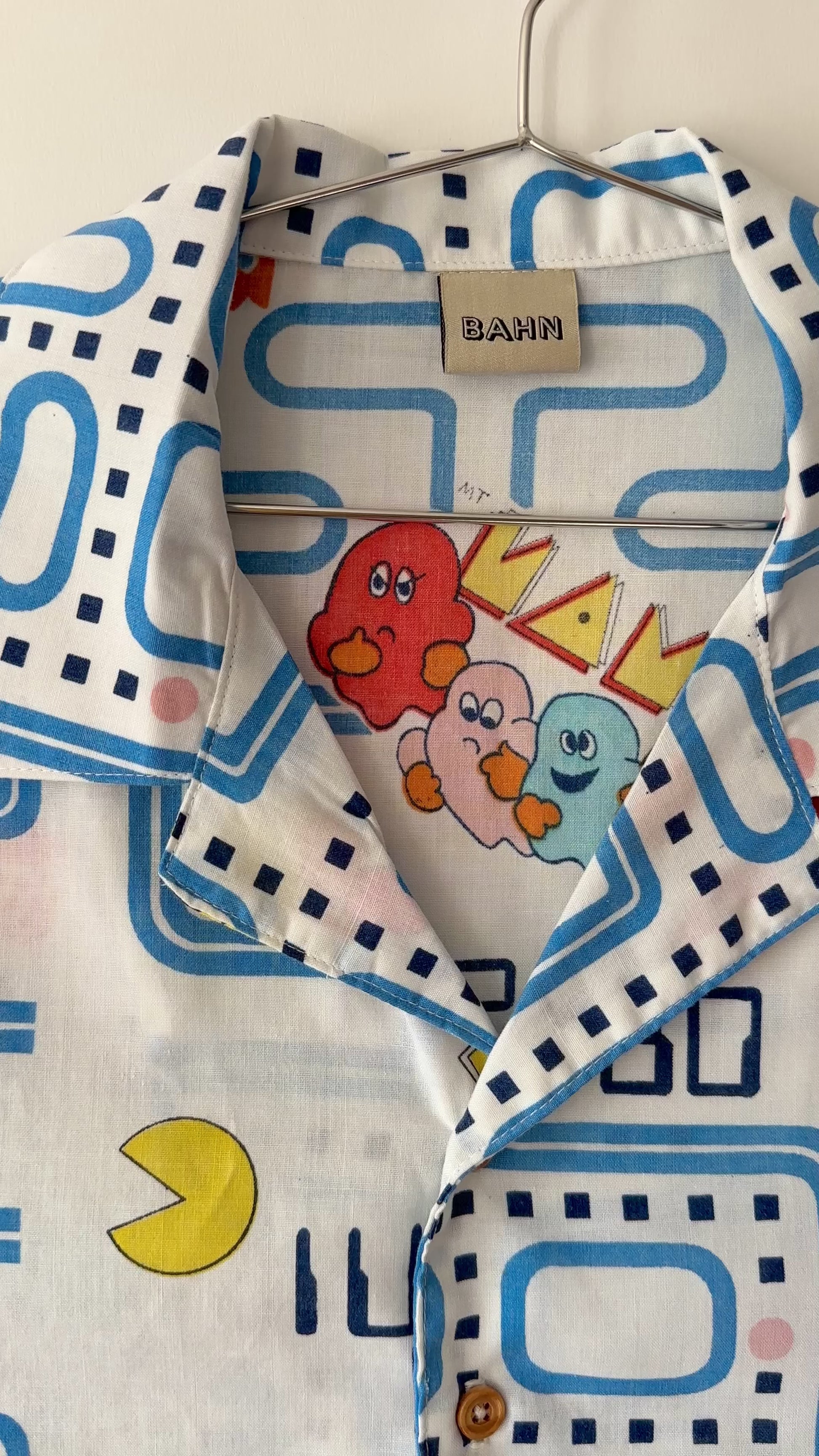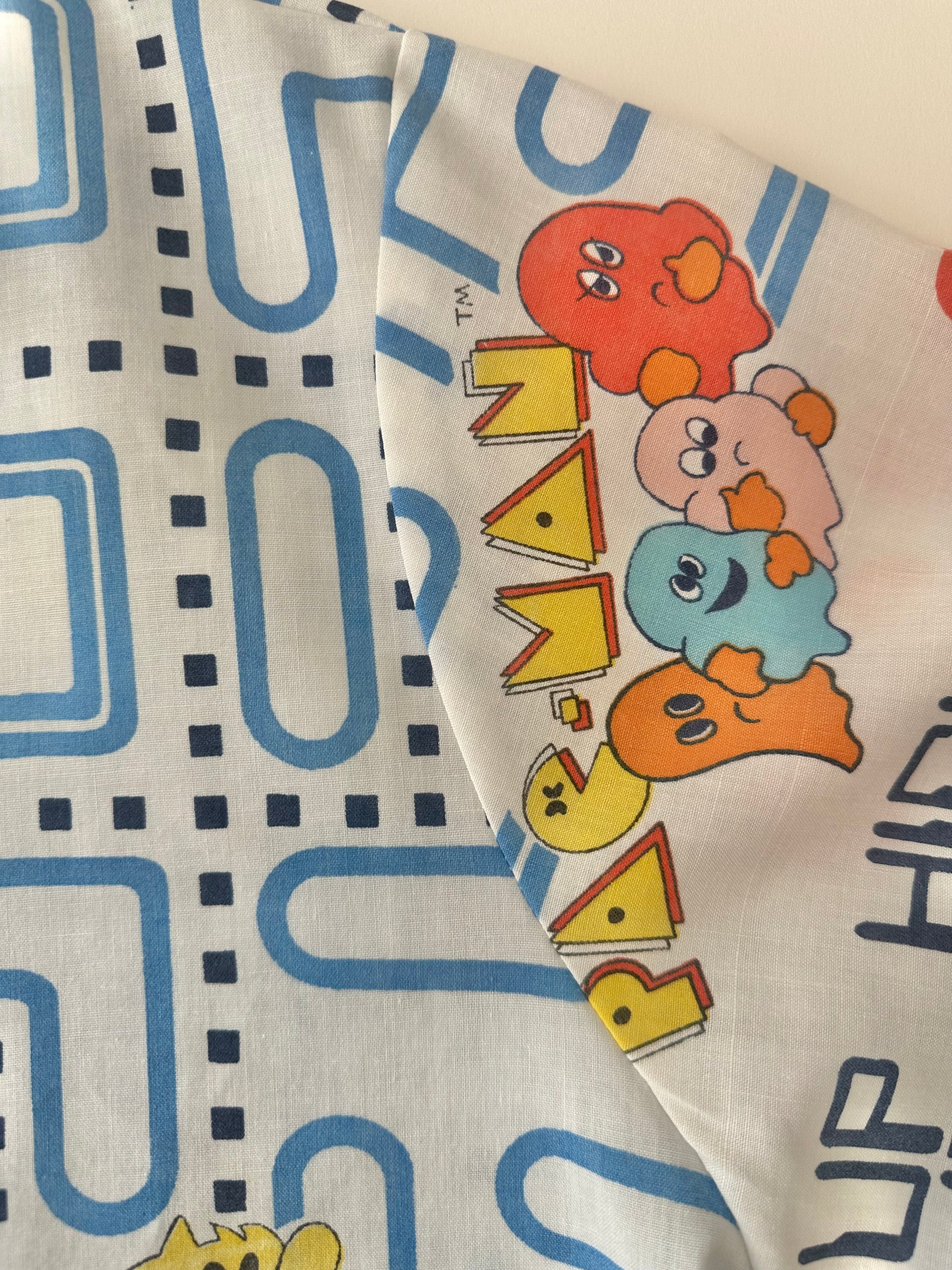 Camp shirt upcycled fr vintage Pac-Man fabric - 2XL