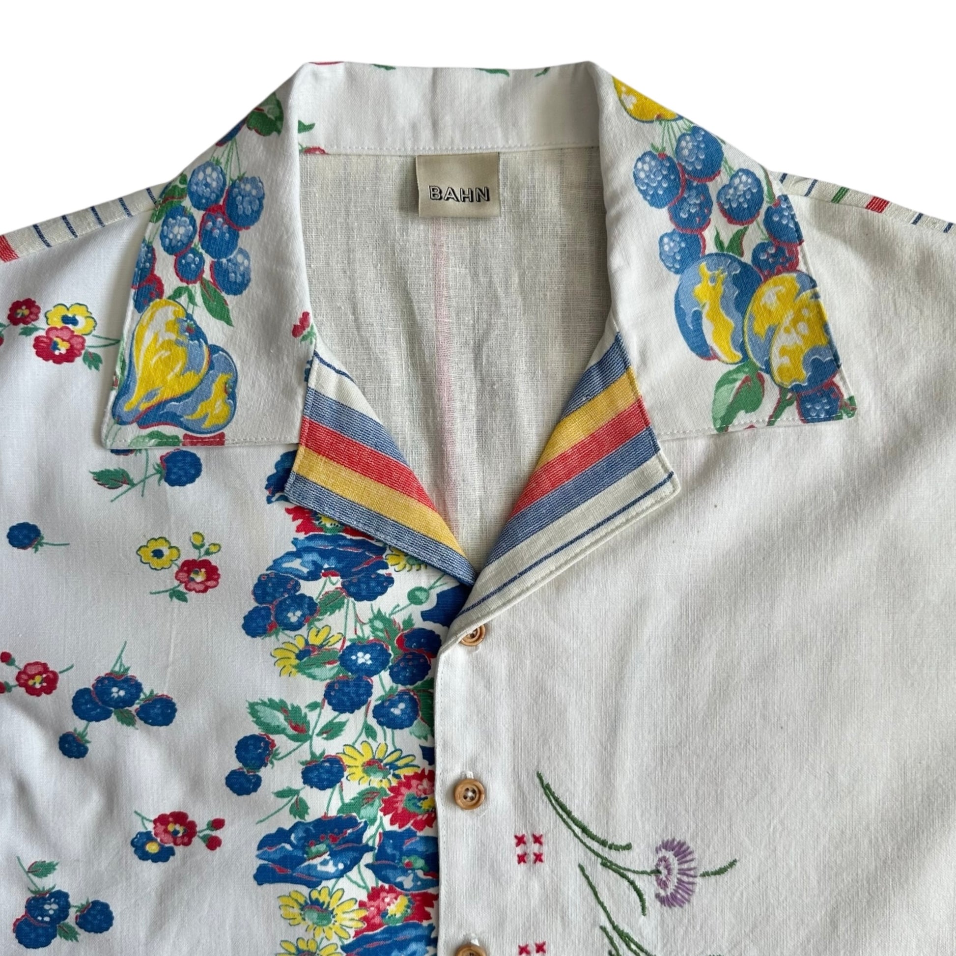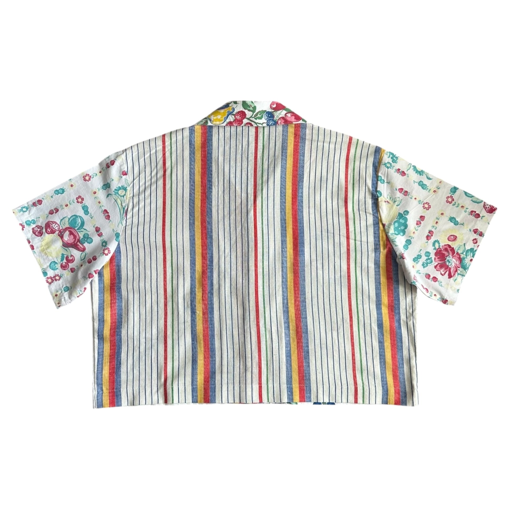 Cropped camp shirt upcycled fr vtg dish towels [XL]