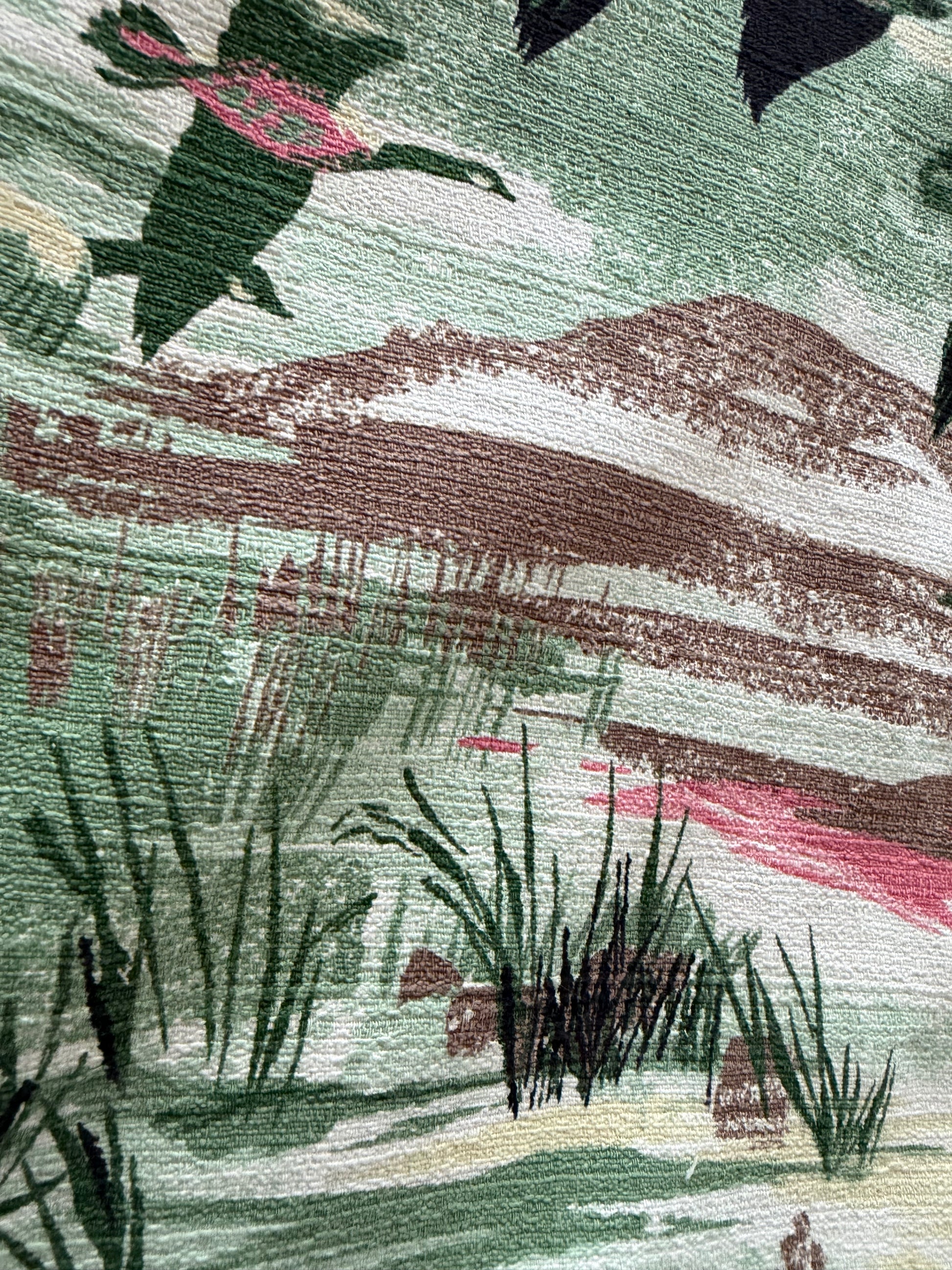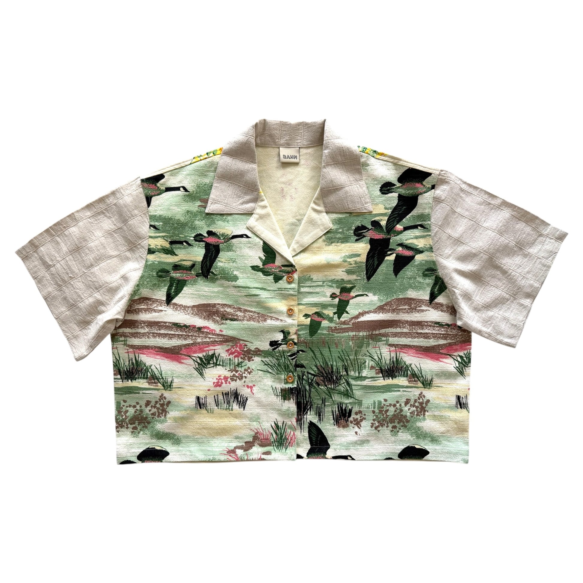 Flying Ducks barkcloth cropped camp shirt [XL]
