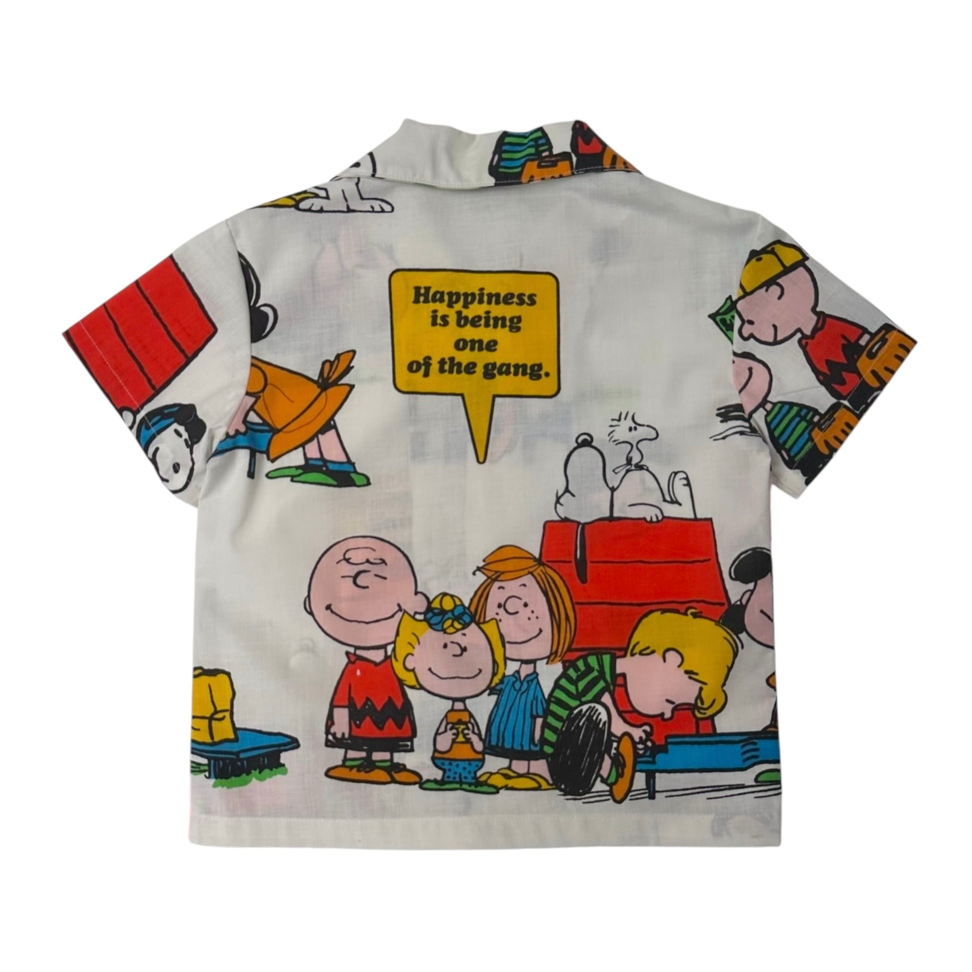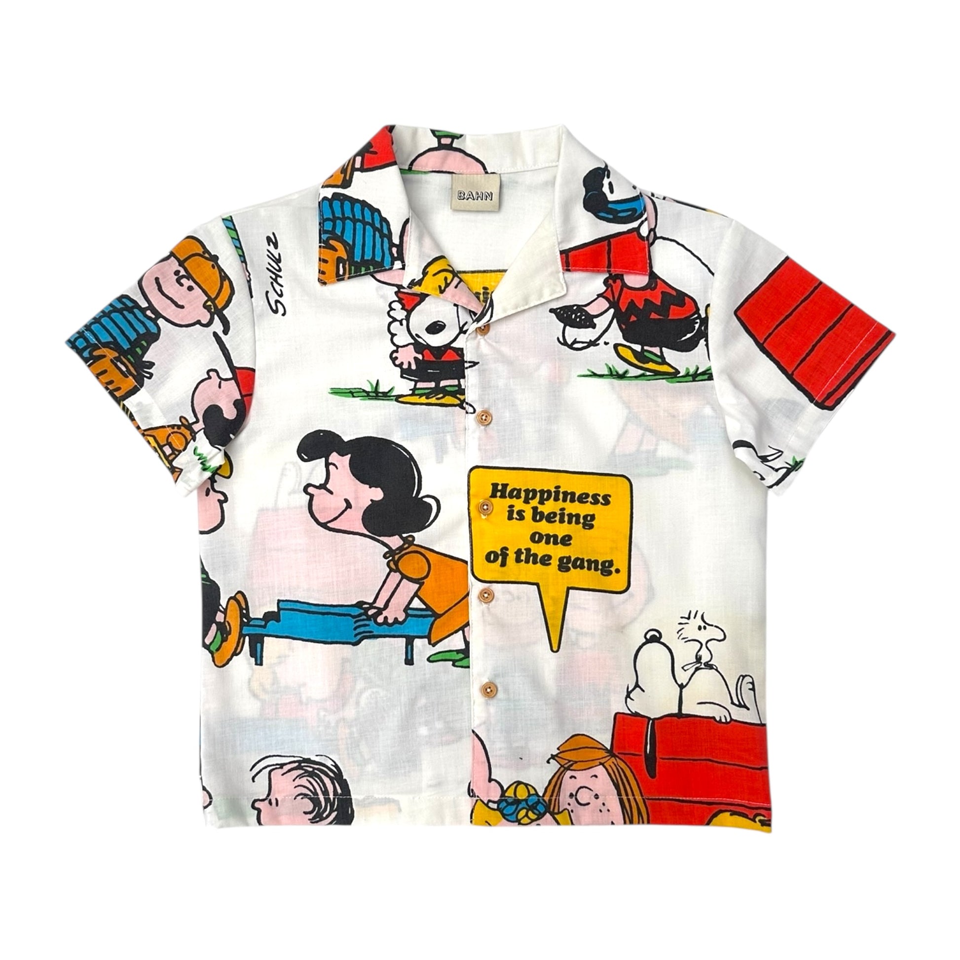 Kids’ camp shirt upcycled fr Peanuts character fabric [XL]