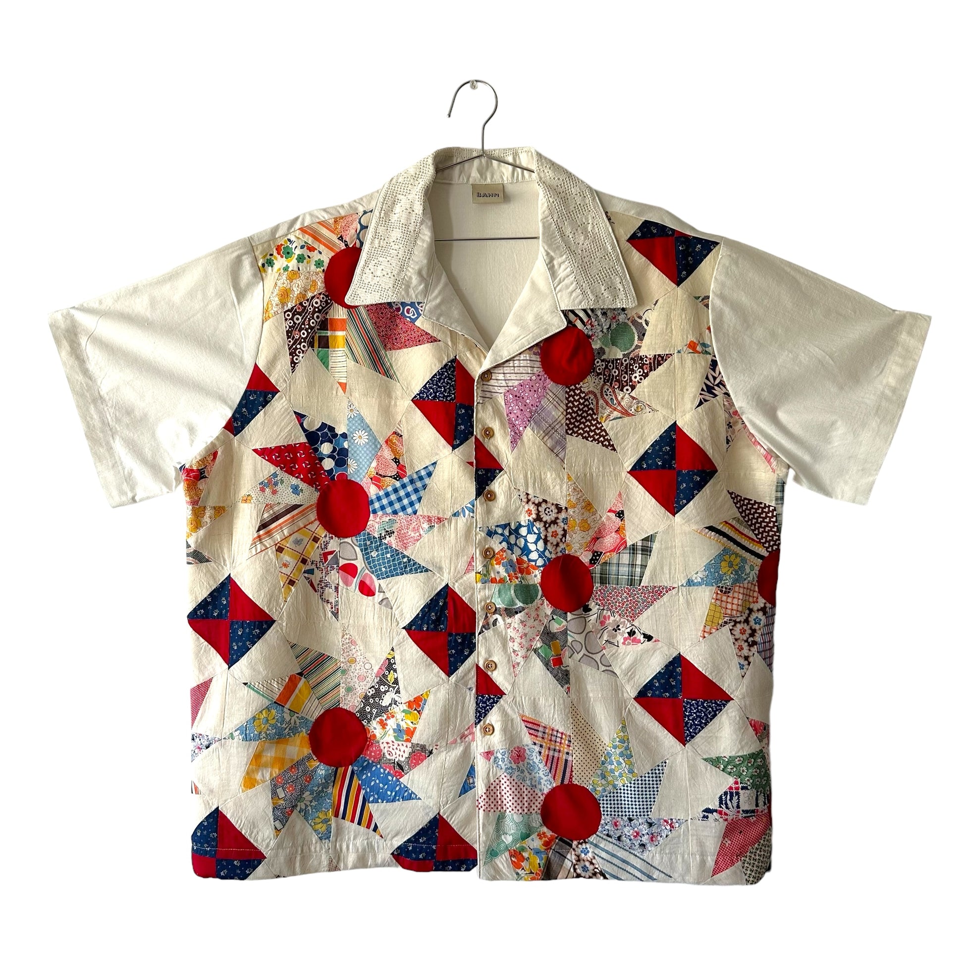 ‘Spinning Pinwheels’ vintage quilt Top Camp Shirt - 2XL